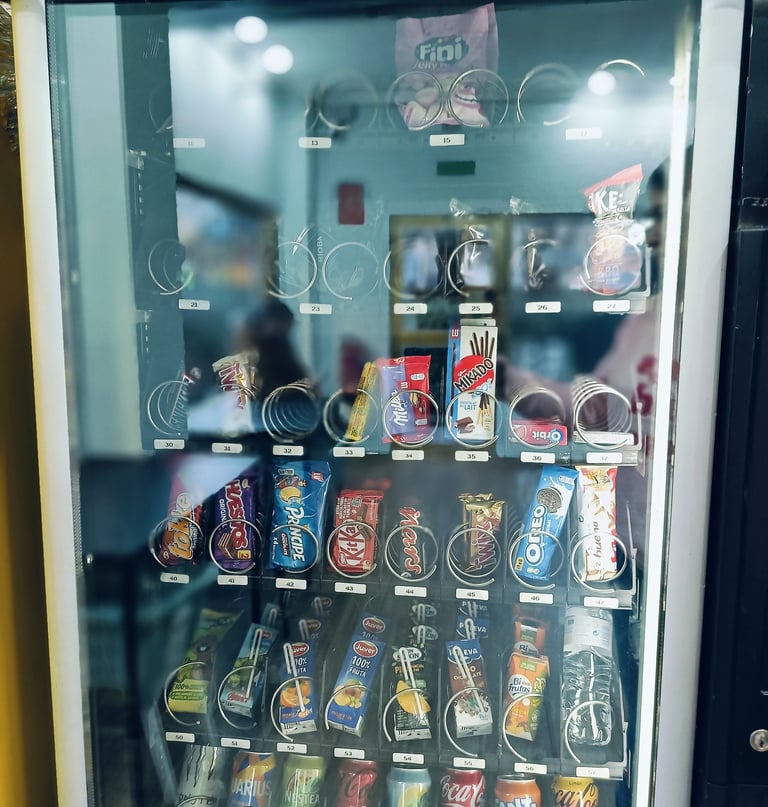 Disponemos de dos máquinas Vending una de ellas abierta 24h, y ademas también hay una de máquina de café con el delicioso café avellana