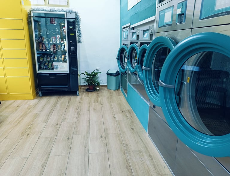 Visítanos en Fuenlabrada, Madrid, para disfrutar de nuestros servicios de lavandería autoservicio y productos snacks en máquina vending.